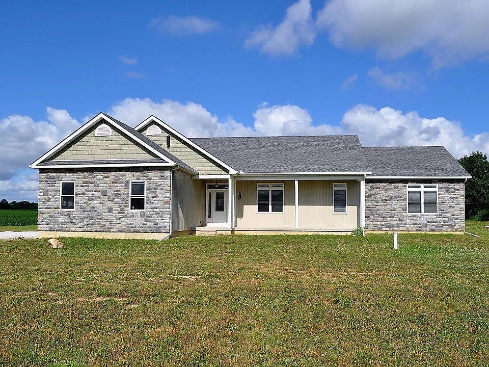 This sprawling ranch home offers an incredible location just minutes from I-70 AND provides a beautiful 360 view all year round! This custom built home features 2,200+ sqft on the main floor & a full basement w/9' ceilings! Entering the front door you'll find a huge great room w/11' ceilings opening to the well equipped eat-in kitchen w/quartz countertops, SS appliances & range hood, L-shape island w/sink & built-in eating space, & windows overlooking the backyard! A private owner suite is complete w/a private full bath & walk-in closet! Easily entertain w/this layout &/or just relax on the 20x20 covered patio & take in the view! FEATURES: 2x6 Construction; 2+ Car Side Load Garage; 9' Ceilings Throughout (11' in Great Room); Sound Proof Walls; Transom Windows; Full Poured Bsmt; & MORE!