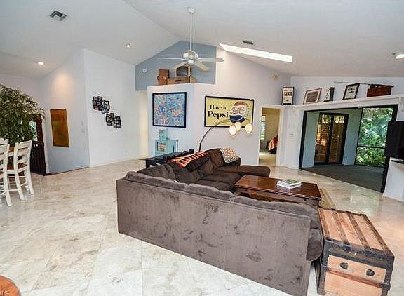 If you are looking for value this is it! Great price for the neighborhood! Private and surrounded by natural ambience, this concrete block home sits nestled in the back of the quiet neighborhood, snuggled amongst trees and surrounded by nature in one of South Fort Myers most reputable and long standing communities. This home, in this neighborhood, equals a perfect balance for someone who is looking for quiet enjoyment, a great lifestyle and a central location. Being just 10 minutes from Sanibel Island, Fort Myers Beach, golf courses, boat ramps, shopping, dining, and entertainment galore, this location is suitable for just about anyone. Inside, this home you will find a very open floorplan with vaulted ceilings, a functional layout, large back porch spanning the entire back of the home, 2 oversized bedrooms, and an ungraded kitchen perfect for entertaining. The sellers are really going to miss this home but they have other plans they need to get on with! With a few updates the next owner could really unlock some solid equity in this home. Floor plan is awesome along with many other nice features. This home is anxious to meet it's new owners! Also located in a great school zone.