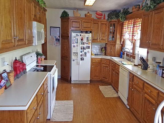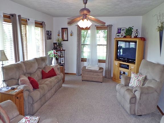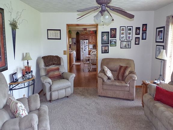 Magnificent picturesque view of countryside. Beautiful kitchen with built-in desk and large dining area. Many ceiling fans and lights. Lower level with finished family room with new flooring 2019, bedroom with special egress window, office, king-size laundry room. B-dry, updated bathrooms, newer 30x30 pole barn with electric plus 14x24 building, blacktop driveway, concrete patio.