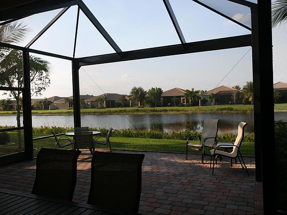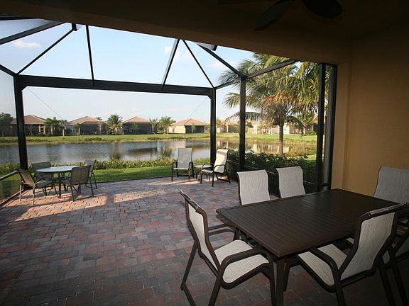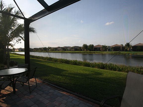 Walk right in to this mint model perfect gently used home with neutral colors & tasteful upgrades throughout located a great private wide water lot with brand new extended screen enclosure with picture window. This home offers open split flexible floor plan with large neutral tile installed on diagonal throughout, crown molding, custom window treatments including motorized shades for sliders, custom fitted closets, indoor spacious laundry room with upgraded cabinetry, upgraded stainless appliances complete with service contract,spacious garage with storage area & brand new comfort height toilets. 3rd bedroom has pocket doors & used as office den with no closet as shown. Enjoy the amazing active lifestyle that you deserve complete with cafe.Maintenance includes cable,painting, club, gate+++