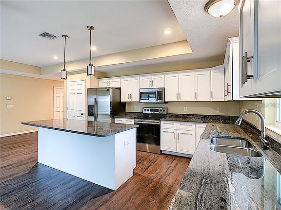 - Interior Features: Ceiling Fans(s), High Ceiling(s), Split Bedroom, Walk-In Closet(s), Solid Wood Cabinets, Kitchen/Family Room Combo, Stone Counters, Thermostat
