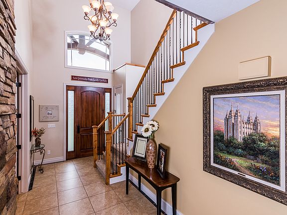 MLS #1402379. Priced to sell! Beautiful vaulted ceilings and an open floor plan. Spacious, main-floor master suite with fireplace, jetted tub, dual showers, and large walk-in closet. 3 more fireplaces. Extra-large 3-car garage with its own entrance to the basement. Basement has 9' ceilings, large walk-out patio, its own laundry room, storage room, and is wired and plumbed for a second kitchen. Pergola covered deck with stunning views of the mountains and Utah Lake. Pre-qualified buyers only.