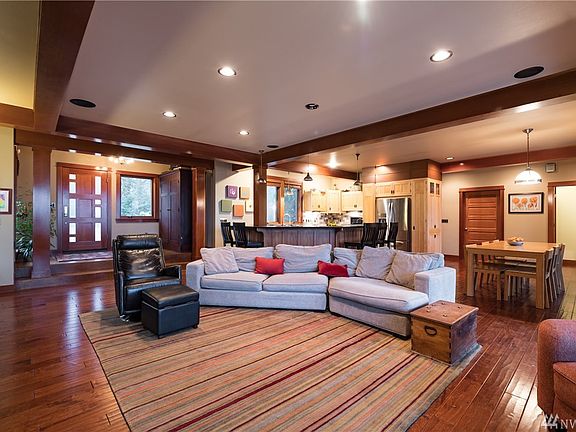 Peaceful & PRIVATE approx. 5 acre oasis w/views of the Bay, Islands & Olympics awaits at the end of a ¼ mile driveway. The NW Contemporary main residence was constructed w/detailed precision using top of the line materials such as fir casement windows, radiant heat, solid wood floors, & custom cabinetry. Detached studio w/full guest quarters above, detached garage & carport, screened in porch w/wood fireplace, multiple outdoors entertaining venues, tree buffer for seclusion yet expansive views!