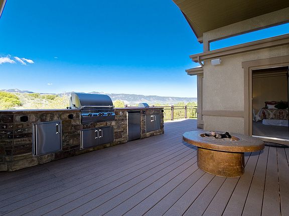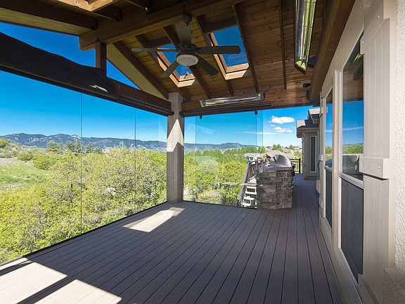 Come home to luxury and comfort in this gorgeous home built by Vantage. If privacy and views are your hot buttons, then look no further. Impressive walkout ranch backs to spectacular views of an open space, pond and Pikes Peak! From the moment you enter this home, you???ll see that quality craftsmanship exudes from each room. Open concept living with adjoining dining and living rooms. Floor-to-ceiling fireplace and windows enhance the living space while volume ceilings and arched doorways give a European feel. The gourmet kitchen is a cook???s dream with a large slab granite-topped island and stainless appliances. The eating area is spacious and looks out on the enclosed, heated four season room with glass surround, just perfect for sitting out on a cool evening. The extended composite deck has stainless kitchen, fire pit, designer railings and did I mention the view?! You may never want to come inside! Main floor master is the ideal retreat with access to the deck and lots of windows facing the mountains. The 5-piece bath has spa-like amenities with a dramatic shower, built-in shelving, huge walk-in closet and raised double vanity. At the end of the hall is another bedroom and bath perfect for guests or office space. Down the tile-and-wood stairs, you???ll find an expansive family/rec room, complete with wet bar and stone fireplace, that walks out to the lower deck???a perfect spot for entertaining or family gatherings. An office/workout/play room adjoins the rec room, and three more bedrooms and two baths are located in a separate wing just awaiting your ideas of how you might utilize all of this square footage. Plus this gorgeously landscaped lot with lots of stone and the utmost privacy has a corner lot setting and impressive curb appeal. Spectacular!