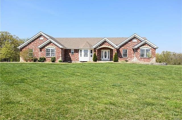 Beautiful Custom built brick & stone ranch home on 4 acres with park-like setting, backs to golf course and a gorgeous view of the lake. Gracious open foyer leads to coffered ceiling dining room with stunning bay window and vaulted great room with wood burning stove . The Kitchen features an impressive amount of cabinet and counter space, gas range, microwave, dishwasher, refrigerator and conveniently adjoins the breakfast room which leads to a 3 season room. Spacious master bedroom suite with 8 X 10 walk-in closet , separate shower with multi body sprays and a large jetted tub for relaxation. Two additional bedrooms, hall full bath, main floor laundry and half bath complete the main floor . Lower Level features a 28 X 20 recreation room which includes pool table, large family room, office with french doors, full bath & wet bar with wine cooler and dishwasher. Extra wide stairs lead to the 3 car garage to make it easy to move any large items.