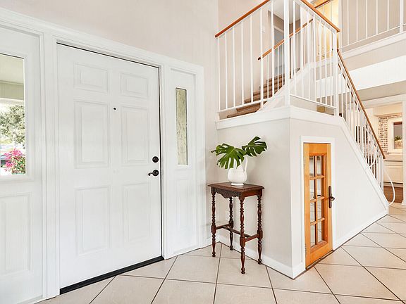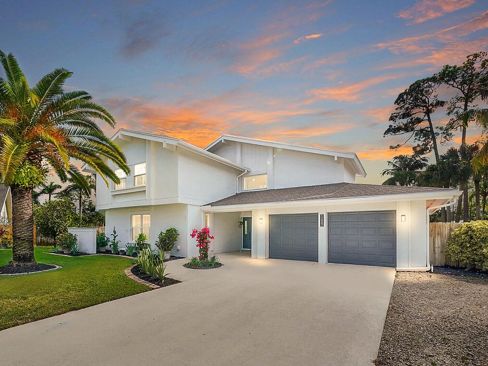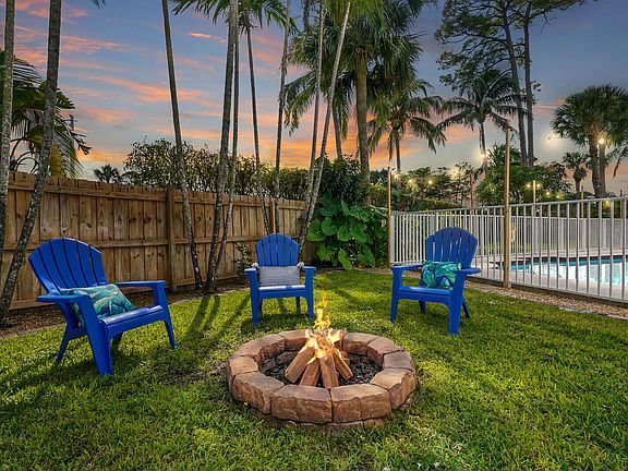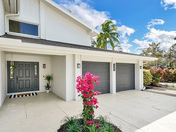 Stylishly Updated and Spacious Two-Story Home with Entertainment-Ready Backyard! Beautifully situated on a 0.33-acre cul-de-sac lot just minutes from The Mall at Wellington Green, this 4BR/2.5BA, 2,876sqft residence affords an incredible lifestyle with superb form and modern function. The exterior captivates with a farmhouse-inspired color palette, lush tropical landscaping, and a covered entryway. Warmly inviting, the interior is flooded with warm natural light throughout the three-way split floorplan, a neutral color scheme, durable tile flooring, a luminous open staircase, a large flex space room/office, and an expansive living room with gorgeous and convenient French doors. Radiantly re-imagined to reflect discerning culinary desires, the semi-open concept kitchen is the heart of the home and features stainless steel appliances, poured concrete countertops, white shaker cabinets with soft-close drawers, a white farmhouse sink, a French door refrigerator, an electric range/oven, a built-in microwave, a brick backsplash, a dishwasher, a built-in beverage/wine refrigerator, and an adjoining formal dining room. Bursting with entertainment-value, the home delights with an oversized family room, which has wood planked vaulted ceilings, recessed lighting, and two-sets of exterior French doors. Step outside into the fully fenced-in backyard to enjoy a swimming pool, a covered lanai, a firepit area, fruit trees, raised garden beds, outdoor shower, and plenty of room for future customization. Rest easy after post-entertainment bliss in the upper-level primary bedroom, which impresses with a deep closet, a secondary closet, a separate sitting area/office/nursery, and an en suite featuring a soaking shower/tub combo and a storage vanity. Each additional bedroom is generously sized for the comfort of guests. Bring your imagination and transform the three flex spaces to suit your needs. One is located adjacent to the master bedroom and features it's own window and built-in bookshelf perfect for a home office or hobby room. Two very large spaces downstairs near bathroom could be used for formal dining, granny-flat, teen rec room, and more. Opportunity abounds! Other features: 2-car garage, main-level laundry room, remodeled guest bathrooms, full set of impact windows/doors, close to restaurants, schools, and shops, and much more! Call for a private tour!