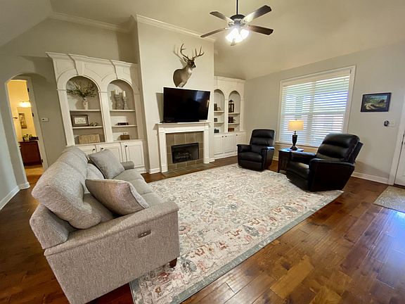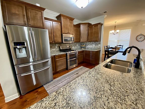 This beautiful 4-bedroom 3-bath home in the Villages at White Oak boasts an open, split floor plan, high ceilings, wood floors, master suite and two additional bedrooms that share a bath on the first level. Granite counters and stainless appliances in the kitchen. There is a spacious bonus room upstairs as well as the art room/office and newly added bedroom with its own bathroom. 3-car garage is a desirable feature with 3rd garage being drive thru. Beautifully landscaped and ready for you!