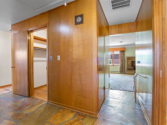 This home was lovingly custom designed and cared for, with so many extras! You must see in person to appreciate all of the unique details. Entry and hallway is paved with beautiful natural stone. Well maintained wood through out the home. Plaster walls through out. Lighted wooden cornices on windows and sliding door with cove ceiling in the living room. 2 gas fireplaces – living room and rec room. Downstairs rec room with wet bar and pool table. Lower level floor in rec room is heated to be comfy in the winter as well as hot water heat that isn’t drying the air. Zoned heating with controls in each room. Nice weather, enjoy the crank out windows with pull down screens. And when hotter weather hits – there is a new AC unit. Enjoy the fenced back yard view from the living room and one of two electric pump bird baths. From the living room is the covered patio and back yard gas grill connected to the house gas. In the kitchen, enjoy the new stainless refrigerator. Intercom system throughout home as well as built in Storage Everywhere!! A few more surprises, but you will have to come and see for your self.