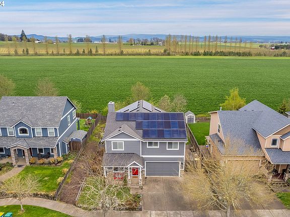 Welcome to this charming 2,325 sqft, 5 bedroom, 2.5 bath home that backs out to a peaceful green open field. Enjoy the front swing on lazy afternoons and the money-saving benefits of paid off solar panels. With potential RV parking, this home has something for everyone. Come make memories in this beauty. Downstairs you will find a bonus room that can also be used as an office or kid's playroom, an open living room and spacious kitchen with tons of countertop space. Upstairs features a laundry room, five bedrooms, which one of those is a primary suite with high ceilings, walk-in closet and amazing views!! Oh! Let's not forget the fruit trees that convey with this home. Come see it for yourself!