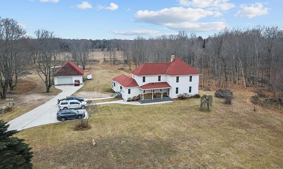 Amazing property on Washington Island! Home offers old world charm with all the modern amenities you are looking for. LR offers hrdwd flrs, stained glass windows, a cozy wood stove with a custom stone wall plus wall to ceiling built-in bookshelves w/window benches. Dream kitchen w/beautiful cabinets, large island, 2 sinks & 8x5 walk-in pantry. Dining area offers a wet bar, space for a large farm table & patio doors w/access to the back deck. 2 bdrms on the main floor. bath & mud/laundry rm w/built-ins. 2nd primary bedroom upstairs with 9x8 closet & another walk-in tile shower plus double sinks. 3 addl bdrms & 3rd full bath. Spacious 4 seasons rm w/views of the back yard. Large outdoor kitchen. 2 car det gar & greenhouses all on 40 acres!