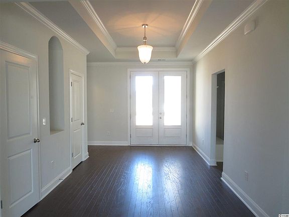 Spacious single level home with 4 bedrooms, 2 1/2 bathrooms, covered porch, and has 10 ft. high ceiling in main living area. Large kitchen with island that has granite, stainless steel appliance with a natural gas cooktop, and 36" staggered cabinets. Other standard features are hardwood floors throughout main living area, tile flooring in bathrooms, crown molding, and much more. Nice size master bedroom with bathroom that has a large tiled shower, and double vanity. Enjoy the Myrtle Beach weather from your spacious covered porch, and golf cart to the beach and Market Common. ***Square footage and measurements are estimates and are to be verified by the purchaser.
