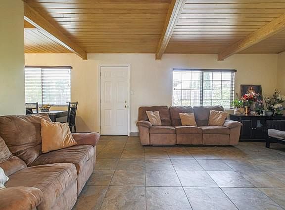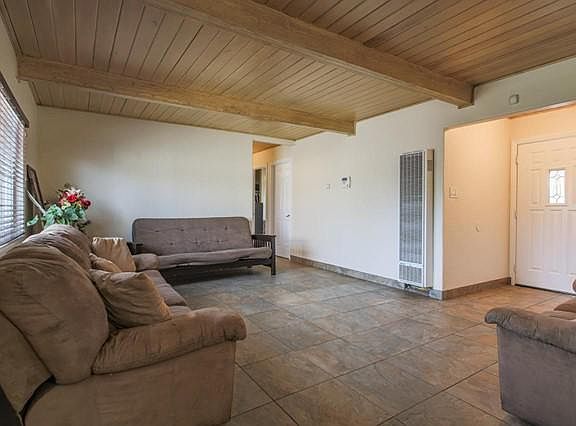 This home welcomes you with exposed beam ceilings throughout. The living room flows into the dining area for you to entertain. The living room and kitchen have been recently painted. The kitchen has been updated with granite counter tops and painted cabinets. Both restrooms have new vanities installed. The front and backyard feature trees with delicious fruits for you to enjoy. Conveniently located near shopping center, dining, schools, parks and hospital. A must see!