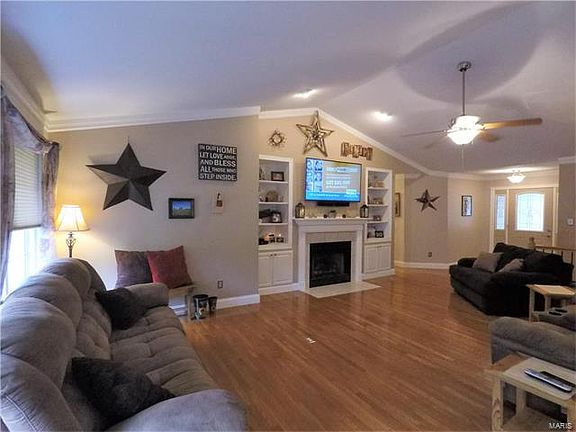 MOTIVATED SELLER!!! - Features 4 Beds, 3 Baths, 2 Car Oversized Garage & BONUS 2 CAR Detached Garage All on 1 Acre. Only 5 min from Festus. Upon entering you will see the Gorgeous Hardwood Floors throughout the Main Level. Great Room has Cathedral Ceilings, Custom Built-in shelving & Crown Molding that sets this apart from the rest. The Master Bedroom Suite has Large Bay Window, Cathedral Ceiling, Walk-in Closet w/Organizer. Master Bath has Duel Sinks & Sep Tub/Shower. The Kitchen has 42" cabinetry, Stainless Steel Appliances, Culligan Water Softener System, Solid Surface Counters & Large Bay Door leads you to the back deck for BBQ. The Lower Level Finish is perfect for Media/Game Area with Full Bath & 4th Bedroom. Plenty of Storage Space in this home. Other Special Features are Main Floor Laundry, Water Softener, Central Vac, Plantation Shutters, Gutter Guards. The Bonus Oversize-2 Car Detached Garage has Electric & Workshop space. Must have Confirmed appointment to show.