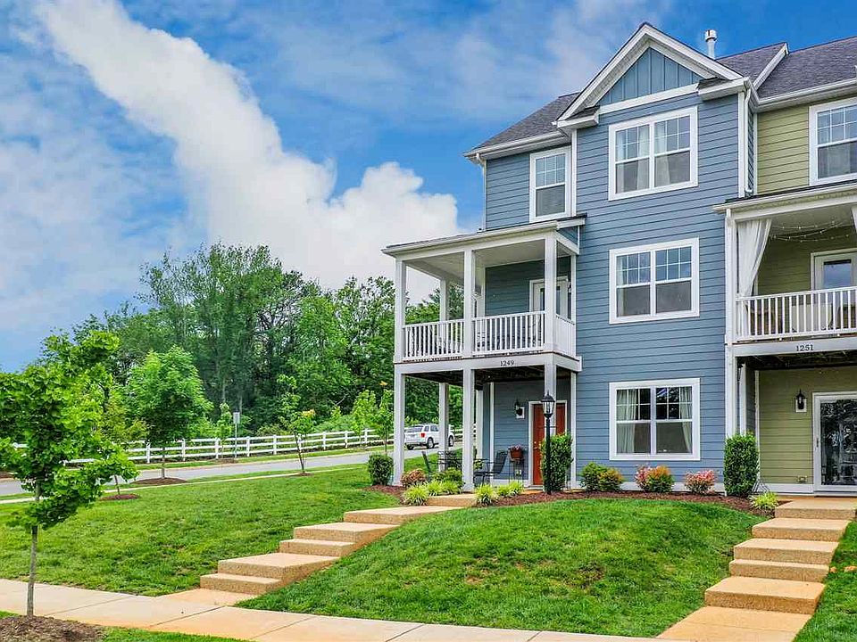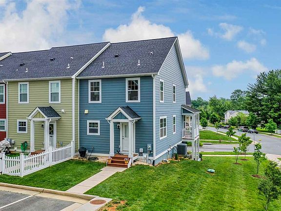 Beautiful end unit townhome with wrap-around deck and mountain views. Only one owner and upgrades throughout! Open main level is perfect for hosting or just relaxing at home. Warm hardwoods gleam in the great room, owners suite and kitchen/dining areas. Great room features gas fireplace, and opens to kitchen with maple cabinets, modern tile backsplash, granite counters and deluxe GE gas appliance package. Upstairs, the owners suite offers a quiet retreat, and there are two additional bedrooms and a full bath and laundry for convenience. The daylight ground floor features a private guest/in-law suite with kitchenette (no stove) and private entrance. Walk to Old Trail Village or Downtown Crozet. Two reserved parking spots too!
