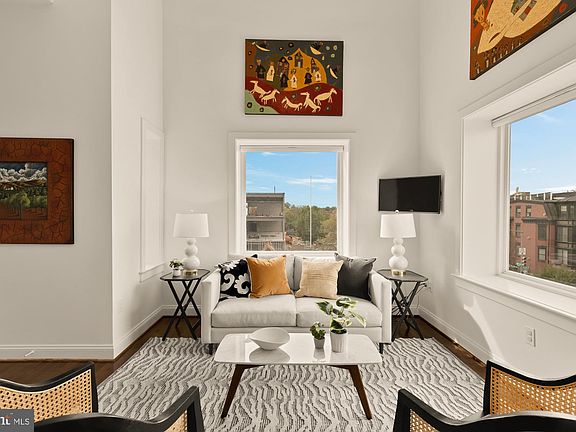 Penthouse living in the heart of Columbia Heights! This top-floor two-bedroom, two-bath condo combines soaring vaulted ceilings, abundant natural light, and thoughtfully designed indoor-outdoor living. The expansive private rooftop deck showcases sweeping views of the Capitol, Washington Monument, and the city skyline, wired for sound and complete with a storage closet. Off the kitchen, a side balcony offers a second retreat, ideal for morning coffee or al fresco dining. Inside, the open layout features a whole-home sound system, in-unit washer and dryer, and a spacious primary suite with en suite bath. The boutique building sits on a rare corner lot, with a shared yard that doubles as a dog run or a gathering space. The location is unmatched—just steps to neighborhood favorites including The Coupe, Thip Khao, El Chucho, Taqueria Habanero, and Wonderland Ballroom. Giant, Target, and the Columbia Heights Metro are nearby for easy errands, while Rock Creek Park is walkable for fresh-air escapes. A brand-new elementary school rising across the street will soon add even more vibrancy to this sought-after community. Vaulted ceilings, two outdoor spaces, a true primary suite, and a prime Columbia Heights location—this penthouse truly has it all.