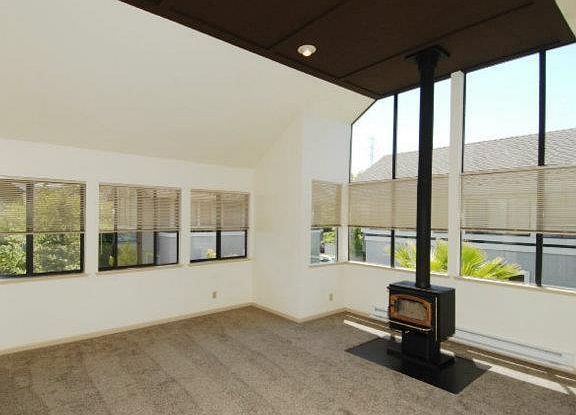 Charming & delightful single family home. Walls of glass bring in the outdoors to make this an enchanting property. This is a "reverse" plan home. All bedrooms & full bath on the first floor. Living room, dining room, kitchen & half bath on the top floor. The high ceilings give this home a contemporary feeling of spaciousness. Perfect for those with discriminating taste. A 1-car garage plus numbered parking space is included