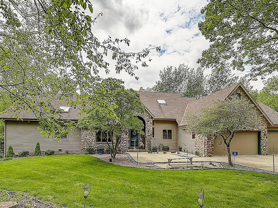MAGNIFICENT OVER 4,000 SQ FT SUN-FILLED & OPEN DESIGN CUSTOM BUILT HOME WITH SOARING CEILINGS IN DESIRABLE STONEPINE SUBDIVISION ON OVER 2.5 ACRES WITH 4 BEDROOMS, 3.5 BATHS , UPDATED KITCHEN & BATHS (2018), NEWER CARPETING (2018) & INTERIOR PAINTING!(2019) Inviting Great Room with 26 Ft Cathedral Ceiling, Beautiful Gas Marble Fireplace, Wall Niche, Full Wall of Windows Including Transom Windows, Hardwood Flooring & View of Loft,Bright Updated Kitchen w/Newer Quartz Countertop & Snack Bar, Elegant Formal Dining Room w/Gorgeous Cathedral Ceiling & Skylights , Main Level Office with Full Wall Bookcase, Luxurious Master Bedroom Suite with Master Bath & Private Balcony & Fantastic Finished Walk-Out Lower Level with Sauna, Rec Room, 4th Bedroom and 3rd Full Bath...ABSOLUTELY STUNNING HOME!