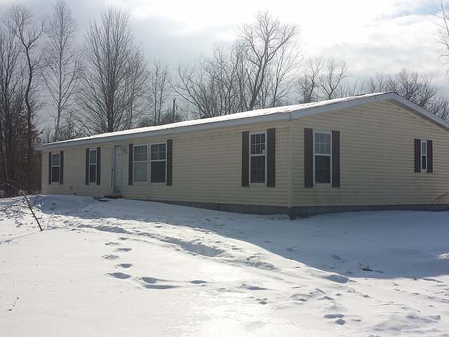 A little country in Midland county. Four bedroom two bathroom home. The kitchen has plenty of cabinets and is open to the dining area with a wood stove for suplement heat to natural gas forced air furnace. Sliding doors in the dining room open onto the deck on the back of the home with a fenced in chain link fence. The master bedroom has a large bath with garden tub and stand up shower. This manufactured home was built in 1995 and is located on approximately seven acres of flat land mostly cleared and open. It is subject to bank approval for short sale. Convenient location southwest of Sanford for commute to either Midland or Mt. Pleasant .