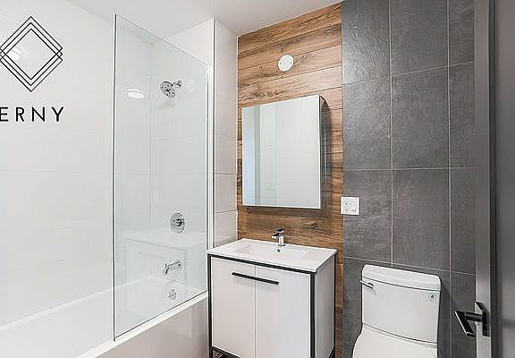 spacious 1 bedroom in brand new building available now ( flex 2 bedroom upon request) must see while it lasts! large living room gorgeous modern kitchen central heating and a/c beautiful bathroom stainless steel appliances virtual doorman laundry in building near all your shopping needs and train statiion!