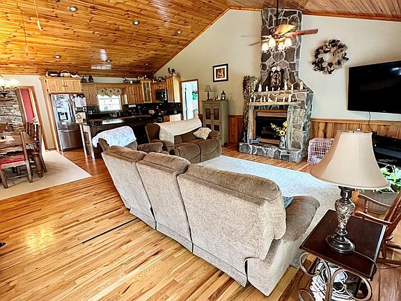 Wow! Gorgeous farm with custom built home sitting on 13+ acres with guest home! Step inside to see the beautifully crafted handiwork including hardwood flooring, wooden beams, custom trim work, and stone accents. Large open layout with oversized living room complete with vaulted wood ceilings and stone gas log fireplace. Beautiful custom cabinets in the kitchen and new stainless steel appliances. Home is completely handicap accessible including 4' wide hallway and 36” doorways as well as handicap ramp on the front deck. Large master suite with attached oversized bath. New den/family room addition with wood burning fireplace. Step outside and over to the finished and completely remodeled 1 BR 1 BA apartment above the handyman's garage/workshop- perfect for guest home or Airbnb in the mountains! Also outside is a barn with electric and water, new picnic shelter with lights and fans, large storage building & chicken coop. All brand new fencing around the farm- ready for animals!