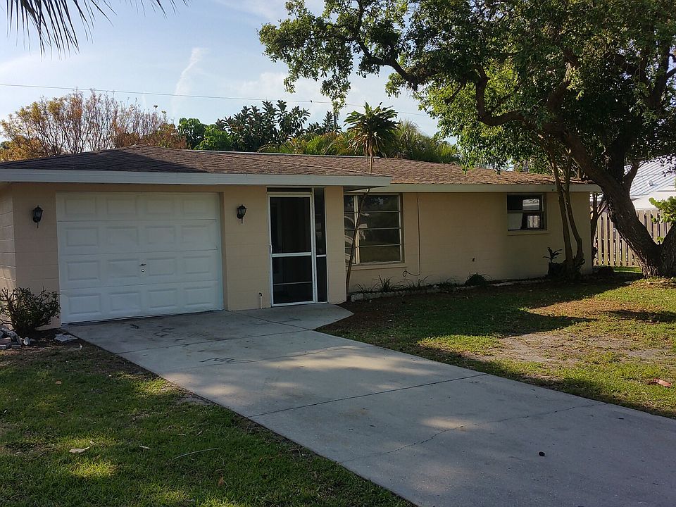 This is a striking property in South Venice! This lovely home is updated and well maintained making it move-in ready for you. Plus, it's a block house with a new roof in 2020 in a low risk flood zone. Entering through the front door you'll feel right at home with the pleasing gray and brown color scheme. A wall to the kitchen has been opened up, giving the home an open airy feeling. The kitchen was updated in 2015 with new cabinets, appliances, and granite countertops. The dining area has attractive wainscoting on the wall, with sliders to the screened lanai. The lanai has comfortable waterproof decking for the flooring. The spacious backyard has a beautiful tree and is enclosed with fences. The children in your world will enjoy the swing/playset or it can be removed to make room for a pool. There's a spacious laundry/storage room off the kitchen. No carpet in this house, the wood-look flooring continues from the living room into the bedrooms. The bathroom has the same tile as the kitchen. South Venice has no HOA or CDD fees or deed restrictions. A short drive will take you to Historical downtown Venice and numerous beautiful Gulf beaches. South Venice has an optional Civic Association which features a community boat ramp and ferry service to a private South Venice beach on the Gulf of Mexico. Grocery stores, restaurants, entertainment, and more all located within a few miles. The new Atlanta Braves Ball Stadium is only 8 miles away.