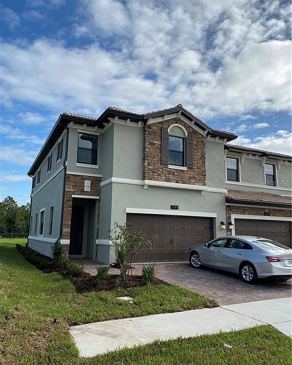 Beautiful, brand new, fully-furnished, "Smart" Townhome (Vistas at Champions Gate). This 4 BED/3 BATH with 2 Car Garage will not last. Located in ChampionsGate, this gated community has amenities, activities, and events to entertain the whole family. Enjoy the golf lifestyle at two nationally-recognized, Greg Norman-designed courses or any of the 54 holes of golf near the Vistas. Downtown ChampionsGate Village offers restaurants and shopping within steps of your home. You will have access to the Vistas and Oasis Clubs with high-end amenities such as a game room, a golf simulator, fitness room, dry saunas, and a luxurious, resort-style heated pool and spa. Rent includes lawn service, exterior maintenance, garbage collection, high speed internet, and cable. Furnishings include (2) 65" LED 4K Smart TV's. Call or text to obtain showing instructions; this turn-key/move-in ready home has all kitchen appliances including Keurig coffee maker, toaster-oven, Ninja blender. Motivated owner, accepting offers and may consider a short-term lease (minimum 90 days). Redbud Model may be previewed via Virtual Tour.