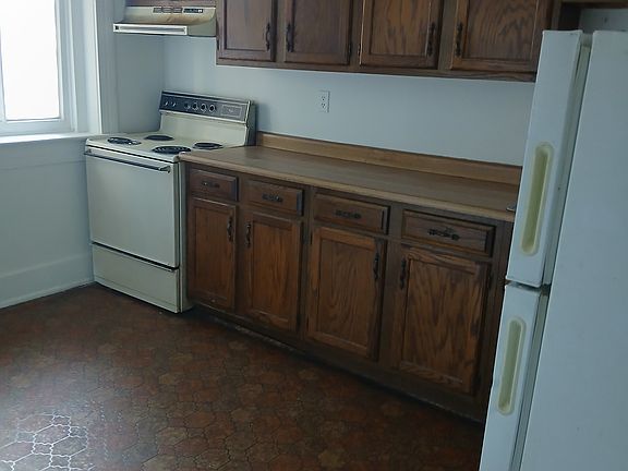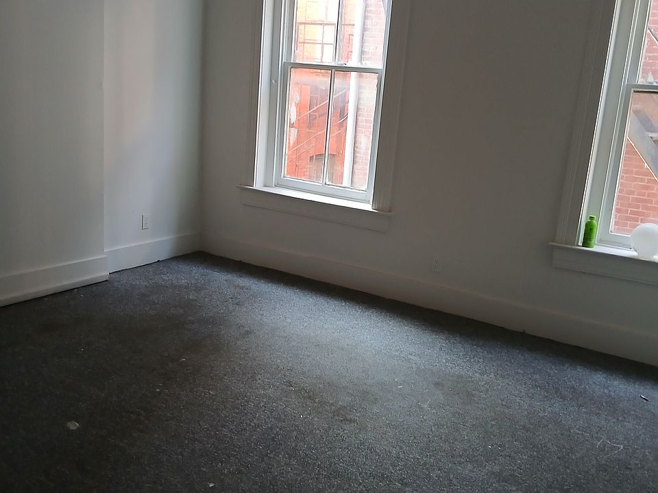1BR, 1 bath townhouse with carpet, tile, and laminate flooring. Also includes a stove, fridge, window unit, ceiling fan, fireplace mantel, and street parking. 1st floor unit. Owner pays water.