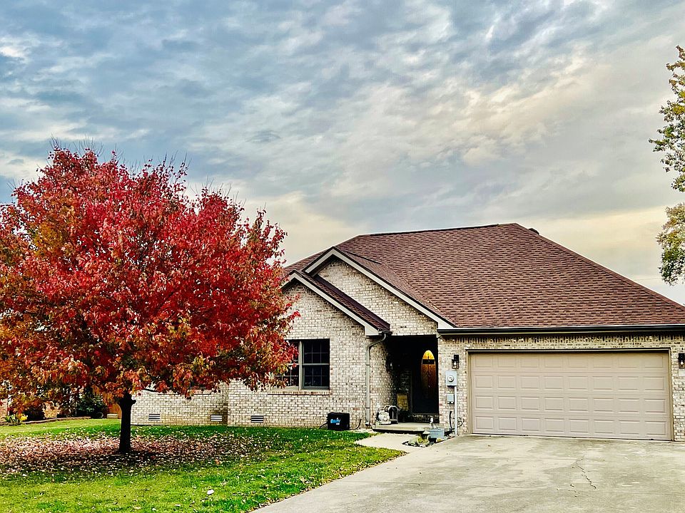 This new listing checks all the boxes! All brick ranch in town. 3 bdr 2 full baths 2 car attached garage. NO HOA. Move in ready. Buy with peace of mind. Newer Roof and furnace, air conditioning with humidifier. Large eat in kitchen with ceramic tile flooring. Check out how many cabinets and all the counter space. Range and refrigerator included. Family room with barnwood wall and pet care laminate flooring. Bedrooms have carpeting and have been freshly painted. Low traffic area, home is on dead end street, yet convenient to everything. Total electric, energy efficient home with fully insulated crawl space. Quiet area with large backyard. Home is contingent upon seller finding suitable housing. Excluded items: bar and free standing cabinets in kitchen. Water purification and softener are not included. Prelim title has been started with Chicago Title.