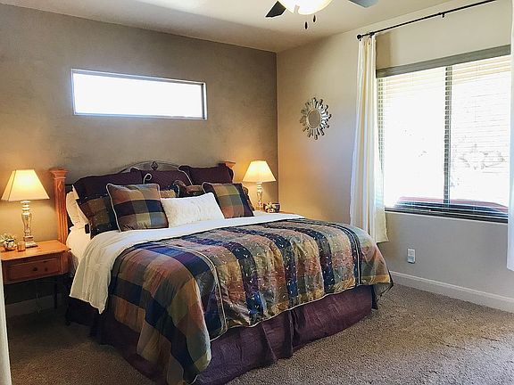 WILL WORK WITH BUYER AGENT AND PAY A COMMISSION. This lovely 4 bed 2 bath home has a 3.5 car garage with epoxy floors plus extra parking space next to house. This home has mainly been used as a second vacation home with minimal use. Spacious floor plan with many upgrades, 9 foot ceilings throughout, suede plaster wall treatment in the Grand Room, 3'' thick granite through out, custom cabinets, all closets have built in's, large vinyl fenced backyard with two patios and a courtyard in front with views of Pine Valley Mountain. A neighborhood of fun trails for walks and ATVs as well as a park next to creek.