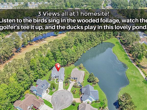 A Rare Gem in the Prestigious Pebble Creek at International Club. Welcome to an exceptional opportunity to own a true masterpiece in one of the most sought-after golf course communities on the Grand Strand. This showstopping residence seamlessly blends elegant design, high-end finishes, and an unbeatable location—creating a lifestyle that’s nothing short of extraordinary. Perched on an oversized lot at the end of a quiet cul-de-sac, this home enjoys sweeping waterfront, wooded, and golf course views—a trifecta that’s nearly impossible to find in a single property. The meticulously manicured grounds feature brick veneer, professional landscape rock, new sod, and custom curbscapes, setting the tone before you even step inside. The interior showcases the coveted Brookehaven floor plan, thoughtfully designed with sophistication and functionality in mind. Soaring 12-foot ceilings, custom molding accents, and elegant wood-look luxury tile flooring create a warm yet refined atmosphere throughout. This 4-bedroom, 3-bathroom home offers expansive living areas including a sun-drenched Carolina room and a formal dining area ideal for entertaining. At the heart of the home is a gourmet kitchen, complete with double walk-in pantries, upgraded cabinetry, generous counter space, and 2 ovens for the discerning chef. The luxurious primary suite is a true retreat, featuring a charming bay window, large walk-in closet and a bathroom with additional elbow room. Upstairs, a private guest suite with a full bath provides the perfect space for visitors or multigenerational living. Exterior upgrades include a newer 2019 roof, top-of-the-line Trane HVAC system installed in 2018, and gutter helmets on the gutters ensuring year-round comfort and peace of mind. Now on to the icing on the cake! As a resident of Pebble Creek, you’ll enjoy exclusive access to premium amenities just steps from the International Club Golf Course and Clubhouse. Highlights include a resort-style pool, fitness center, and a community library. The clubhouse restaurant and lounge—recently renovated and scheduled to complete its new outdoor dining space in 2025—offers an elevated culinary experience with stunning golf course views. This is more than just a home—it’s a lifestyle. Come experience luxury living in one of the area’s premier golf course communities. Schedule quickly! **Please note: Photos were taken during winter season when grasses are dormant; therefore, grass in the photos have been edited to green color.**
