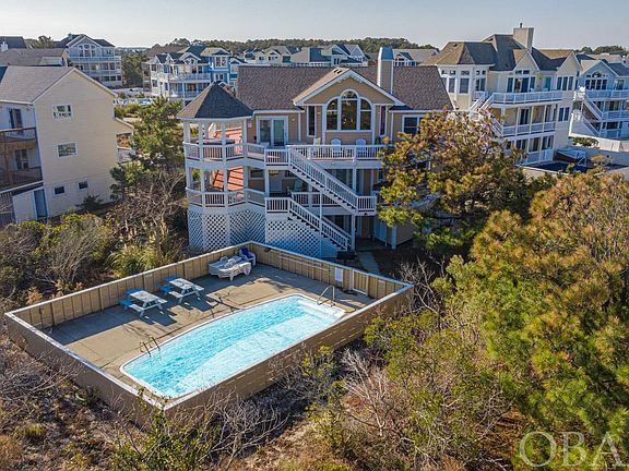 Projected to generate $103,500 in rental income, this exquisite Victorian beach cottage in the heart of Corolla, located in the charming Villages at Ocean Hill (VOH), combines classic charm with modern luxury. This property is an ideal investment, promising a blend of scenic beauty and lucrative rental potential. Situated at the northern end of the Outer Banks, the VOH community is a serene oasis between the tranquil Currituck Sound and the majestic Atlantic Ocean. It offers abundant opportunities for family fun, sports, recreation, and relaxation. This home features a single-car carport and ample space for beach gear. Its exterior boasts a private saltwater pool (16' x 32') and plenty of room for sunbathing on the pool deck. The ground floor features a cozy game room with a half bath and sleeper sofa, and convenient laundry facilities. The first level welcomes you with a beautifully decorated foyer, leading to two King Bedrooms, a plush Queen Bedroom, and a Pyramid Bunk Bedroom, complemented by two Full Bathrooms. The enclosed sundeck, deck swing, and covered deck spaces provide perfect spots for relaxation. On the top level, discover a spacious great room with a half bath, a dining area for ten, and a modern kitchen equipped with updated appliances. The family room is bathed in natural light, and the raised living area features a TV, fireplace, and comfortable seating. A King Master Suite with a Full Bath completes this level, offering ocean views from the outdoor decks and a hot tub under a covered gazebo. The VOH community includes a state-of-the-art Fitness Center, sports complex with Tennis, Pickleball, Basketball, and Sand Volleyball courts, and a nearly 2-mile bike lane to Corolla Light. Nature enthusiasts will appreciate the adjacent Currituck Banks National Estuarine Reserve. This Victorian beach cottage is an outstanding family retreat or investment property. Contact us to schedule a showing and seize this lucrative opportunity in the Villages at Ocean Hill, a destination like no other.