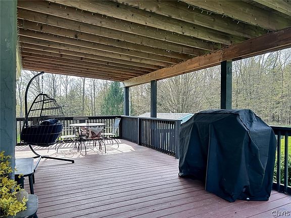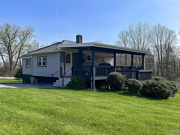 Buyer Balks,you get another chance! Charming four bedroom, two FULL bathroom home in the award-winning Skaneateles SD! Boasting a new addition that adds both modern features and increased functionality, this home offers approx. 1200 SF. You will love the spacious, covered porch overlooking the property — can you imagine a more perfect spot to enjoy your morning coffee?! Upon entering, you’re greeted by a large EIK with ample cabinet space. Just off the kitchen, you’ll find a bedroom with a full bathroom! The main level also offers a bright and spacious living room with vaulted ceiling, a second bedroom, AND a second full bathroom. Downstairs, in the finished walk-out basement, you’ll find two additional bedrooms basement has Wilcox waterproofing system. Outside, there are two large outbuildings for all of your storage needs and a generator wired to the house. This home is situated on 1.38 acres and just minutes to many hiking and skiing spots, PLUS Town of Spafford residents have access to the lake (at the end of Bockes Road). Make this peaceful, rural property your year-round oasis, OR turn it into a cash-cow vacation rental either way you can’t go wrong with this one!