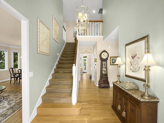 Desirable Thompson Highlands Neighborhood. Impeccably maintained Georgia Saltbox style combined with a traditional floor plan. Portico front entry leading into a grand entrance with vaulted ceilings and an open spindle staircase. Real gleaming white oak hardwood floors, tall 9 foot ceilings w/crown moulding and large windows for lots of natural light. Welcome guests in your formal living room / dining room combo. Beautifully remodeled kitchen w/granite counters, stainless appliances, tiled backsplash, wood floors, pantry and kitchen nook. Family room w/gas fireplace, built-in shelves and cabinets, and crown molding. Work from home in your private main floor den w/built-in shelves, crown mouldings and wood floors. Primary bedroom suite w/ceiling fan, engineered wood floors, and bathroom. Primary bathroom w/granite counters, tiled floors, double sinks, toilet closet, walk-in closet and jetted tub. Upstairs boasts two additional good sized bedrooms and a large open bonus room/4th bedroom w/closet and two extra attic storage closets. Spacious oversized 2-car garage w/space for a workshop, studio, or custom craft area. Step outside on your private entertainment wood deck w/several outdoor living spaces including a pavilion with shade screens, ceiling fan, heat lamp, lighting and covered hot tub. Enjoy your territorial private treed view out back. This home is served by excellent schools, including Findley Elementary, Tumwater Middle School, and Sunset High School. Great location near shops, markets, stores, restaurants, freeways, and 15 minutes to downtown Portland.