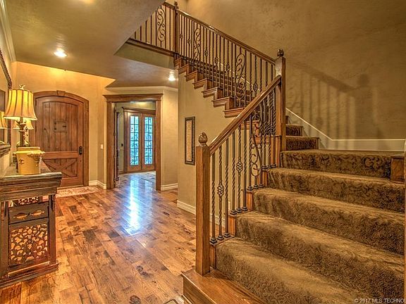 5 bedroom, Bixby North, Chef's kitchen, granite thru out, beamed vaulted ceilings, media/theatre room, 2nd bedroom on 1st floor with private bath, spacious living on a greenbelt. Must see!