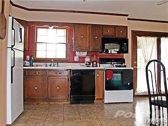 Clean and neat ranch close to major highways. Updated kitchen flooring, carpet in master bedroom, engineered wood floor in living room and updated bath. Huge kitchen has walk-out to 9 x 14 covered porch; 2 finished rooms in lower level w/walk-out to level corner lot that has 2 driveways, one off Hwy CC and one off Meyer Rd. 38x24 oversized garage for that back-yard mechanic. Home has gas furnace in addition to the baseboard heat but there is currently no propane gas provided for that heat source. Seller presently uses only baseboard heat. E - Z to Show.