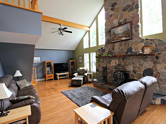 Better than new! Totally renovated in the last 10 yrs. with high end finishes and custom features throughout. Spacious open floor plan features granite and quartz custom cherry kitchen and fabulous 2 story stone fireplace. Bamboo hardwood floors with radiant heat throughout 1st floor and master suite featuring 6ft walk-in tile shower! Second story finished loft entertains a walk in attic. Large garage with workshop space leads out to 10 serene acres with pond and wildlife galore! Country living at its finest!