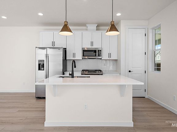 COMPLETED HOME - “The Chicago” by Richmond American Homes. This paired home opens with a spacious kitchen and adjacent dining area. A large living room is steps away and offers access to the covered patio. You’ll also find a powder room on the first floor. The master suite is upstairs, complete with a walk-in closet and an attached bath with dual sinks. Two additional bedrooms, a full bath and a laundry round out the residence. Includes a 2-car garage. Conveniently located near shopping and restaurants. Enjoy the peace of mind and security that a gated community offers. Maintenance of exterior paint and roofing is included in HOA fee's as well as lawn maintenance. Stop by our furnished model home 12758 W. Endsley Ln, Star, ID 83669 and ask us about our special offers. Restrictions apply.