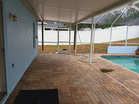 SIGN YOUR LEASE BY DECEMBER 15TH AND YOU'LL GET 1/2 OFF THE NEXT MONTHS RENT! NEW ON THE MARKET AND WE'VE JUST REDUCED THE RENT ON THIS 3/2/2 SOLAR HEATED POOL HOME. IT'S BEEN FRESHLY PAINTED INSIDE AND OUT & THE BACK YARD IS FULLY FENCED! The Greatroom/dining area have a vaulted ceiling with a slider that leads out to the pool. Kitchen is equipped with a range (new blt in microwave), refrigerator dishwasher and a pantry. Split bedroom plan has the guest bathroom w/tub-shower combo and the master has a walk in shower & walk in closet. Both bathrooms have a vanity. Inside laundry facilities and ceiling fans in the Greatroom & master. Truly an IDEAL location at a truly IDEAL price... The rent includes pool maintenance & trash pick up, but you will need to cut the grass, trim any bushes and weed the brick pavers on the driveway and back pool deck. This home is off Mariner Blvd & minutes to SR 50 for shopping, banking, restaurants and more! It's even got a BRAND NEW ROOF too! Call to make your appointment as soon as possible. We do not advertise on Craigs List and we will always meet you at the property and NEVER ask for funds prior to you seeing a home. COME AND SEE THIS POOL HOME FOR YOURSELF BEFORE YOU MISS OUT! This home is available on a yearly basis and does include the pool maintenance which is once a week service. There is a $125.00 credit/back ground check fee due (for 2 adults) anyone 18 yrs or older occupying the property will need to pay $45 for the same credit checks. You may be responsible for paying the last months rent in advance-depending on rental references and/or job verification. There is a $300 non refundable pet fee. NO smoking/vaping inside any rental unit. Tenant responsible for all utilities and their deposits, which may include electric/water/sewer/phone/cable and all hook ups for same. Renters insurance is required and shall be in force for the entire lease period and/or any extensions thereof. NO UTILITIES (WATER/SEWER/ELECTRIC/CABLE/PHONE) ARE INCLUDED IN THE RENT