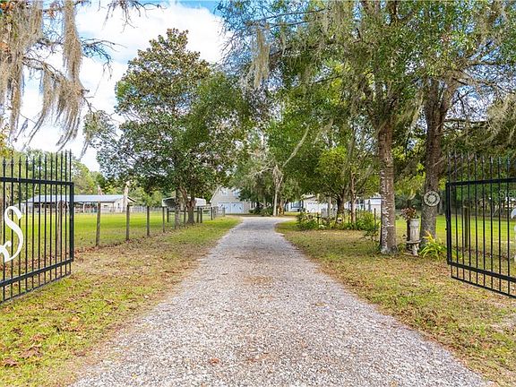 *HORSE FARM EQUESTRIAN FACILITY* RIDE TO THE FOREST! This is a HORSE LOVERS DREAM! TOTALLY COMPLETE offering 5 ACRES of LUSH BAHIA GRASS, no climb Horse Fencing. Multiple Pastures (all w/water), 6 Paddocks & Run-in Shelters. Barn has 3 in & out stalls that can accommodate 6 horses, overhead lighting, tack room incl water heater to bathe your horse in comfort, 2 Huge Metal Carports to store Horse Trailer/Equip, 10x25 Bldg for Hay/Feed. The AMAZING 2005 40x76 3 bed 3 Bath (could be 4 bed) Palm Harbor MH has 3,040 sq ft living, 2 MASTER SUITES w/SITTING ROOMS, Great rm, Dining rm, Family rm, Laundry rm, all walk-in closets, Island Kitchen w/huge pantry, Central Vac, 2 porches, Laminate Wood & Tile Floors, Generator & 2 Car Garage. Detached 3 Car Garage w/Upstairs Studio Apt. w/separate meter