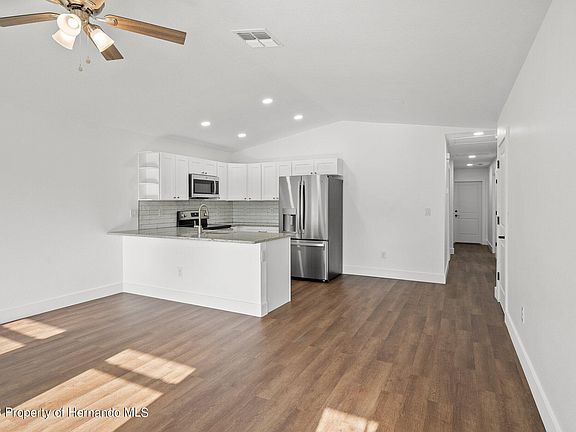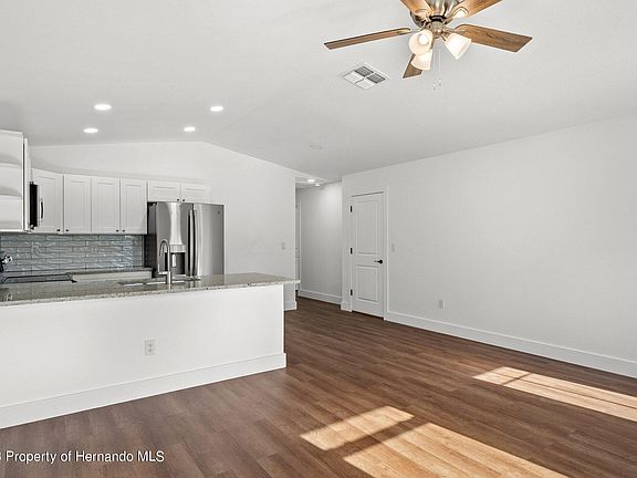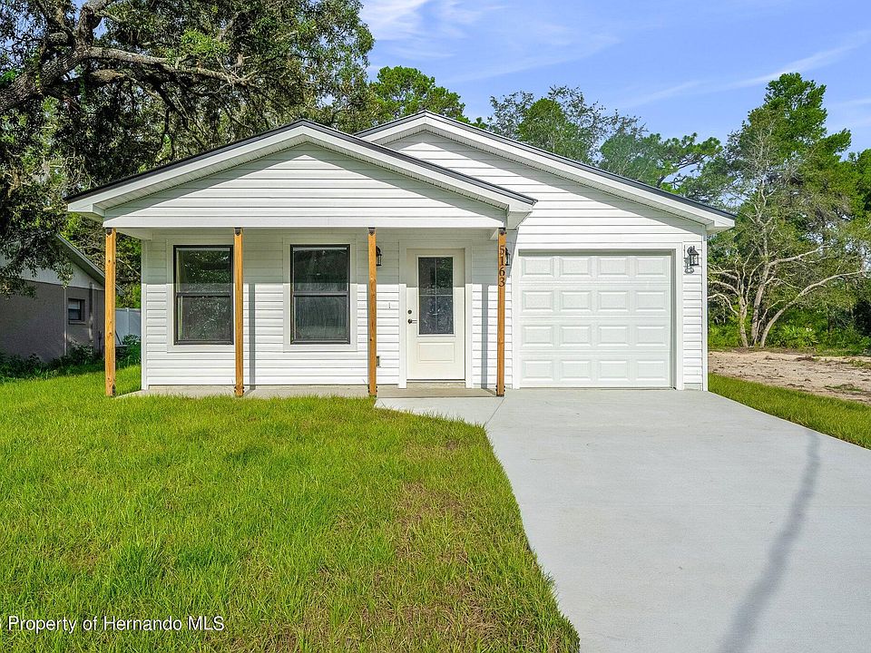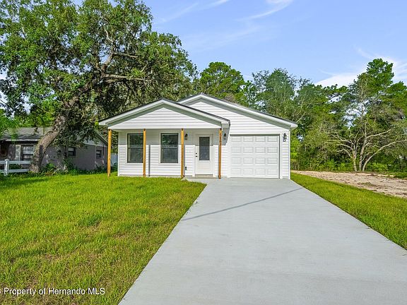 BRAND NEW CONSTRUCTION 3 BEDROOM 2 BATHROOM HOME WITH HIGH END FINISHES THROUGHOUT. Do not miss your chance to own this custom built home situated on a half acre lot on a paved road in Weeki Wachee. You will be amazed when you enter into the spacious family room with high ceilings and luxury vinyl plank flooring throughout. The family room is open to the upgraded kitchen with white cabinets, GRANITE COUNTER TOPS and brand new appliances. Both guest bedrooms feature the same high end finished including waterproof wood laminate flooring and upgraded baseboards. The master bedroom suite includes a private bathroom and walk in closet. All of this PLUS an inside laundry room, metal roof, newly sodded yard, vinyl siding, and a front porch. ESTIMATED COMPLETION DATE IS October 29, 2023