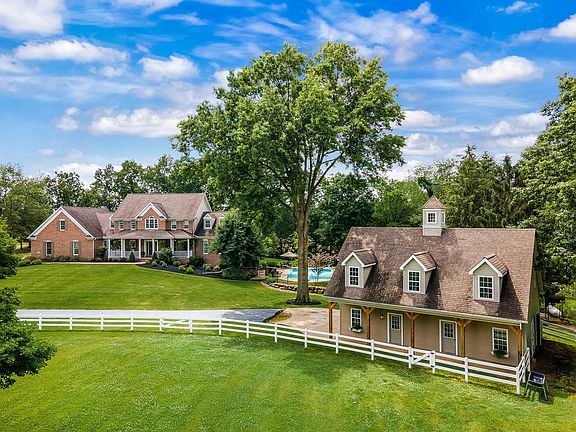 Brick Beauty on 4.30 Acres*Grand Foyer Entry*Great Rm features vaulted ceiling & a raised hearth stone fireplace*Kitchen has a full array of stainless steel appliances, island with granite countertop & breakfast bar seating, stone backsplash, bay window, walk-in pantry, and planning desk & generous dining area*1st floor vaulted master with dual sinks, walk-in closet jetted tub and shower*1st floor laundry is loaded with extras; built-in ironing board, hanging rack, built-in cabinets, closet, folding counter & sink*1st floor office with recessed lighting, built-in desk, bookcase & cabinetry*Formal dining rm with double trayed ceiling & built-in hutch*Vaulted four season room with access to lovely stamped patio*Split wood staircase to 2nd floor from foyer & kitchen*2nd bdrm has direct access to main bath*3rd & 4th bdrms share a Jack & Jill bath rm with dual sinks, built-in drawers and bath/shower combo*5th bdrm in bsmt with full bath * Rec rm with stone frpl & loads of room to entertain*2nd kitchen & dining area with full array of appliances*Storage rm with staircase to garage*Walkout to fenced stone patio, 18 x 36 heated & lit in-ground pool with diving board, & a 40 x 6 pergola * 40 x 56 two story outbuilding is split between a two stall horse barn & 2 + car garage * Amazing attic with endless potential*Pasture, orchard and loads of green space* I'm out of space & there is so much more to tell! Make an appt & you can see for yourself how much this fabulous home has to offer!