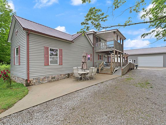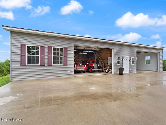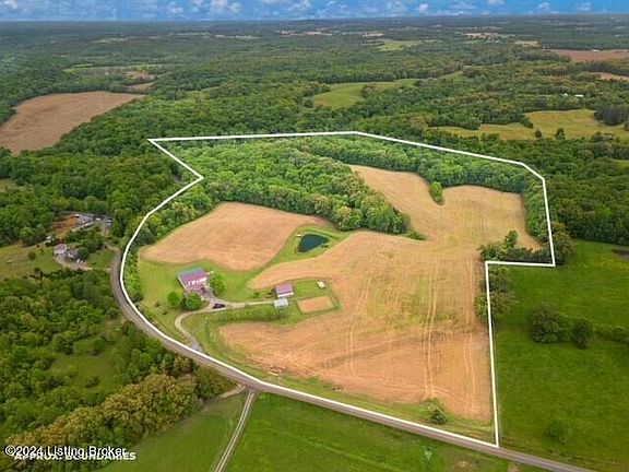 Reduced!!! Whether you are looking out the windows or sitting under the covered porches, you'll never get tired of looking out over this 62-acre paradise! This is truly a hunter's dream with an even mixture of tillable and wooded acreage. The tillable acreage is currently leased out, so you can get paid for someone else putting out your deer plots and taking care of your ground! The woods consist of marketable white oak timber and various other oaks. The owners have received a verbal quote of 140K back a few years ago but never harvested any of the trees. There is an abundance of deer and turkey! The owner has built 6-6x6 custom box stands with covered roofs and stops for easy access around the farm for hunting. Between the mixture of rolling fields, woods, a running creek, and crops put out, this makes the perfect sanctuary for wildlife! The owners have meticulously restored the original farmhouse that was built in the 1800's and have added a new addition to the home with a basement, all in 20212. The original portion of the home completely restored with new floor joists, new metal roof, insulation, drywall, windows, electric, water, plumbing, flooring, lighting, and paint. There is wood-like ceramic tile flooring all through the main floor and the finished basement. The upstairs bedroom boasts of hardwood flooring and has the cutest custom built half bath resembling an old style wooden outhouse. When you walk in this home, you'll get the feel that you are walking into a Cracker Barrel. As a matter of fact, the custom built fireplace was inspired by Cracker Barrel and you'll never see one like it! It has a ventilation system pulling cold air from the basement through cast iron piping into the fireplace which then vents out in all directions heating the main floor making it incredibly comfortable on the coldest of nights! The open floor concept makes it the perfect spot for entertaining friends or family. You will enjoy the large kitchen area with lots of cabinets, counter workspace, and a huge walk-in pantry just off the hallway. The big shop measures 40 X 64 with 3-10' X 18' overhead doors with openers (6+ car garage parking), and enclosed office/hobby area, wiring for 220, a large area to work, a bug free closet of storage, and a 24' x 64' covered lien-to on the back for outside storage. There is also a one car detached garage for additional storage. The wooden stock barn has a newer metal roof and it has a loft for hay. There is a frost-free water spigot at the barn for watering the animals or washing implements off. If you plan on having a garden in the country, you better have it fenced in. We got you! There is an 8' high fenced in garden area with a double gate for the tractor and a walk through gate to easily access your produce. Schedule your private showing and tour of the majestic home and property before its gone!