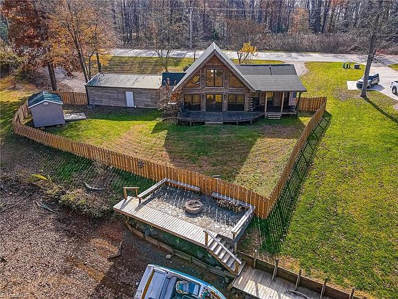 This is your opportunity to own a truly unique home. Located on High Rock Lake, this traditional Log Home is the best of all worlds. Stunning views of the lake from your living room or your own lake side patio. Fenced in back yard with full length deck. Three Car detached garage building for all the toys! Kitchen with Stainless appliances and Granite counter tops and bar seating. Storage/work building and more. Large primary suit on the main floor allows for easy accessible lake lifestyle. New Fence, new lake side patio. Bring your boat and your fishing pole!