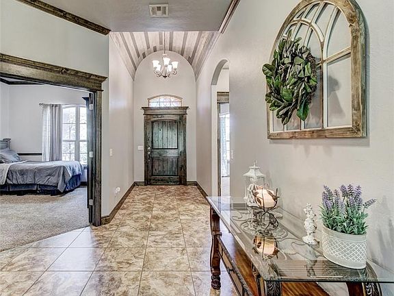 NEED A LITTLE SPACE? Lovely home in the country on 3/4 acre lot, with the security of a gated neighborhood! And that's not all...huge workshop AND 3 car garage too! Inside, a handsome barrel ceiling makes a statement in the huge gallery-style foyer of this fabulous 1,995 sq ft home with 3 Beds, 2 Baths plus a Study! Beautiful Family Room is open to the Kitchen, and features marble-faced gas fireplace and large windows offering wide views of the amazing backyard and extended covered patio. Enormous open Kitchen shows off a lengthy center island/breakfast bar with upscale granite! Great walk-in pantry and stainless appliances! Spacious Dining has plenty of room for a hutch! Private Master Suite is beautifully detailed with a tray ceiling, and the Master Bath boasts a granite double-sink vanity, jetted tub, large shower and walk-in closet. Second full bath has more granite! Security system with exterior cameras! Just minutes to Edmond or Guthrie!
