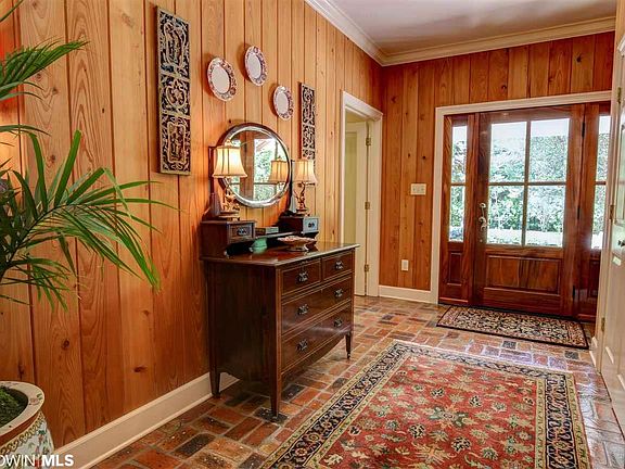 Don't miss this opportunity to live on Fish River! This immaculate custom home offers tons of unique features including cypress walls and ceilings, 5 sets of French doors overlooking riverside with beautiful landscaping, upgraded bathrooms featuring large tile surrounded showers with solid clear glass doors and a jetted soaking tub, granite countertops, oak floors upstairs and all split brick downstairs, 2 car garage, workshop, tons of storage space, privacy, and much more! Journey out of the downstairs reclaimed brick patio and follow the private boardwalk down to the amazing boathouse. The boathouse has two slips both with independent boat lifts for 20-25' boats. Large living area plus an upper deck. The boathouse also features an outdoor cooking/kitchen area with utility/fishing tackle room along with an outdoor shower. Deep water access at boathouse.