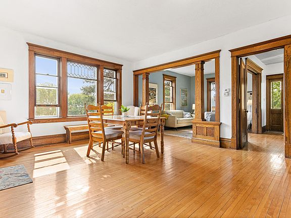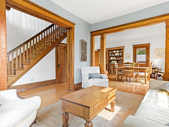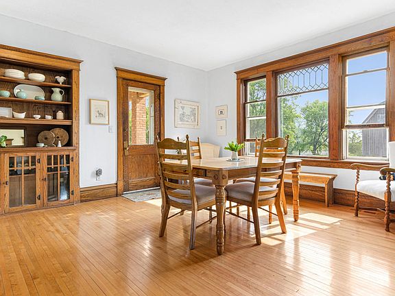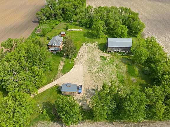 Welcome to this tranquil and stately 1910 foursquare farmhouse beautifully seated on 7 acres of Minnesota’s picturesque countryside. Located within thirty minutes of bustling Rochester and a short drive from quaint Wanamingo and Zumbrota, this home blends serene rural living with easy access to urban amenities. Step inside to appreciate the natural woodwork and built-ins throughout. The charm of the past blends seamlessly with modern comforts in a warm, inviting atmosphere. A sizable basement with tall ceilings provides ample room for customization. Relax on the expansive covered front porch or enjoy intimate gatherings on one of two smaller rear porches. Enjoy gatherings in the generous formal dining room. The third-level attic holds potential for transformation into a cozy loft or enchanting play area. The recently-built two-level timber garage offers ample space as does the 60x35 barn with newer roof. Experience the charm and timeless beauty of this peaceful rural retreat.