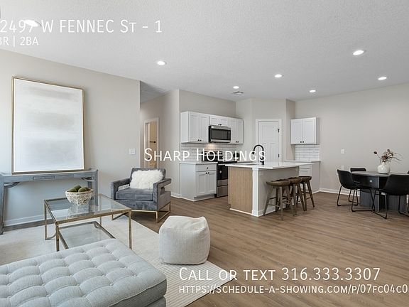 **MODELS OPEN MON-FRI 1-4 AND SAT-SUN 11-2** **PLEASE SCHEDULE SHOWING ON INDICATED MODEL UNITS - 12113 W FENNEC IS HOLLY MODEL** Beautiful and Modern Holly Style 3 bedroom 2 full bathrooms with 2 car attached garage, located in Fox Creek Subdivision in Maize School District near 37th & 119th close to New Market Square. The home features quartz countertops, tile backsplash, luxury vinyl flooring, and neutral finishes. Kitchen appliances excluding refrigerator are provided. Tenant pays all utilities, HOA is responsible for mowing and the sprinkler system. Security deposit equal to one months rent. Maximum 2 pets are allowed with pet deposit equal to 1/2 one month rent and $25/pet monthly pet fee. All adults occupying the property must complete an application. Applications are processed on a first come first serve basis, and will not be processed until they are fully completed. At least one year rental/ownership history with reference is required, 3x's gross income to monthly rent ratio, credit and background review. Co-signer may be required if one or more of the above requirements are not met. Other floor plans available that are currently under construction. Photos are of previously built units of same floor plan, finishes may vary. Lease start date is based on provided timeline for construction completion and may change if unforeseen schedule delays arise. Visit ICTTownhomes DOT COM for all available new townhome areas.