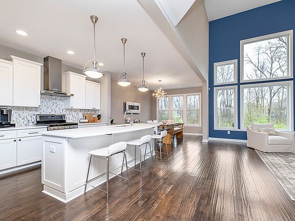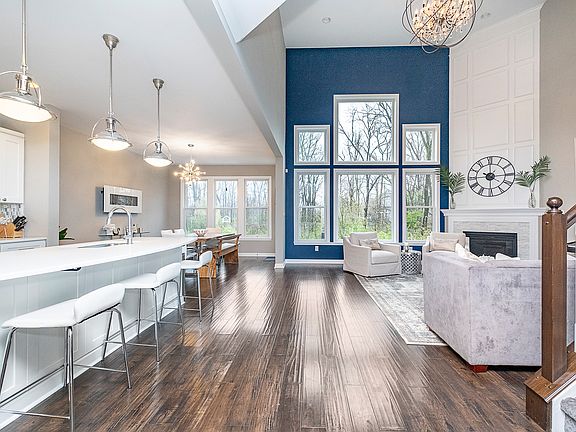 Sought after Thorpe Creek home on a quite street with private pond view and walk out lot! This multi-level home with a Large Primary and Secondary Suite do not come available often! Open Kitchen w/large island, quartz countertops and gas range. Souring 18' ceilings in the adjoining Great Room with Fireplace and a beautiful view out of the wall of windows looking out over the picturesque pond. Large Primary Suite a few steps up from the main on it's own level with sitting area and en-suite bath boasting heated tile floors, shower, tub and walk-in closet. Upstairs you'll find Laundry near master and 3 additional nice size bedrooms with full bath. Beautifully remodeled Office on main includes custom built-ins and glass pocket doors all near the front entrance with a half bath across the hall. Walk down a few steps from the main to a large secondary suite perfect for guest quarters, in-laws suite, teen suite or bonus/flex room. Continue down to the fully finished walk out basement with plenty of space to entertain, access to the deck, a full bath and plenty of storage. Walk out of the basement to a beautiful multi level deck, hot tub, pergola, fully fenced in yard with access to the wooded walking trails in the neighborhood. Sought after neighborhood with so many amenities including a neighborhood pool, club house and walking trails, the floor plan and private pond view among all the other features and updates make this home a must see!