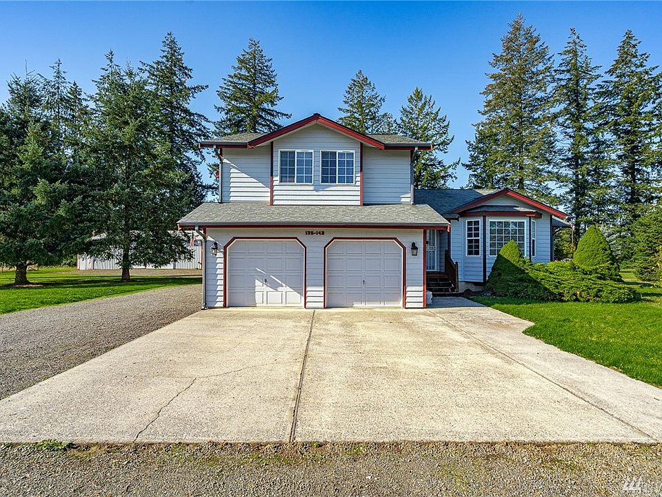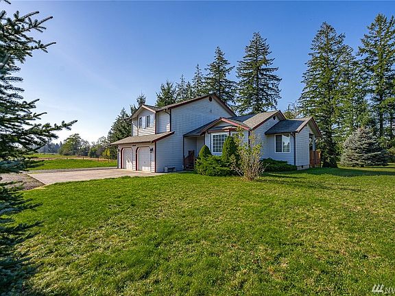Well maintained home located on 5 acres within minutes to I-5. Large living/dining area, beautiful kitchen w/island. Downstairs is a family room with wood stove and sliding glass doors out to the deck overlooking the mature landscaping. Master bedroom suite has sliding glass doors with it's own private deck. 2-car attached garage. Lots of room in the huge 20x60 shop that is wired for 220. There is a fancy chicken coop and lots of pasture for other animals. New roof installed approx 3 years ago.