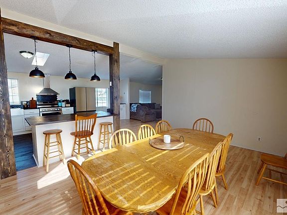 Over a quarter acre corner lot in town, blank and ready for your dream yard or shop or both! The back yard is fully fenced and has an uncovered patio area and two sheds for storage. Inside you have the farmhouse theme throughout with a split bedroom, open floor plan, 4 bedrooms, 2 bathrooms and a family room. The newly remodeled kitchen is stunning with real wood cabinets , barn wood accents, granite counter tops, hexagon tile backsplash, new stainless-steel appliances, farmhouse sink, new flooring,, pantry, fixtures, and breakfast bar. All appliances remain, including the microwave, washer, and dryer. In the now dining area, but what would normally be the living room you have a beautiful coffee bar. The home has new interior paint throughout as well as new flooring except in the primary bedroom and bathroom. The guest bathroom has been remodeled with new vanity, tile flooring and toilet. The primary bedroom had new carpet in 2022, a garden tub/shower combo and plenty of linen storage. This is a must see at a great affordable price!